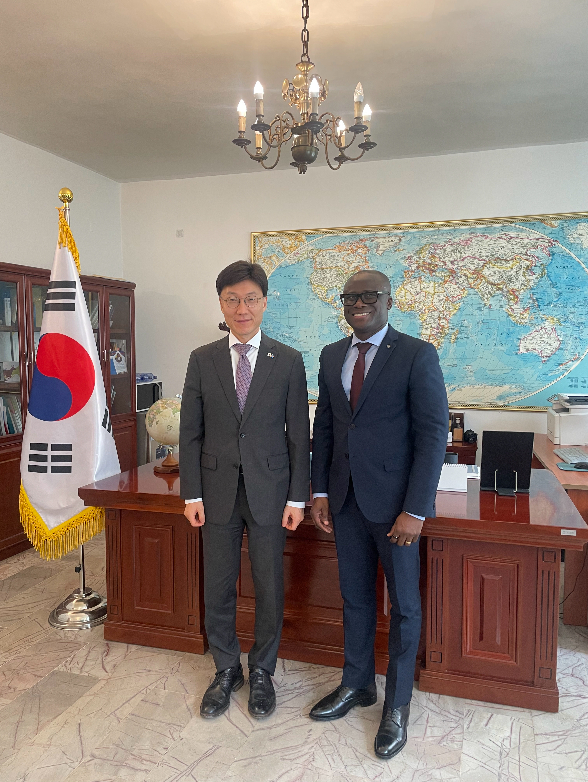 Le 16 avril 2025, l’Ambassadeur Jeong Hong Geun s’est entretenu avec M. Eric Perdison, Directeur régional du PAM pour la région australe. Les solutions envisageables face à la crise humanitaire étaient au centre de leur discussion.